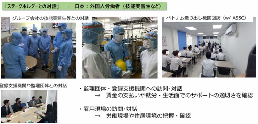また、グループ会社の技能実習生との対話や監理団体への訪問等を通じて賃金の支払いや労働現場・住居環境に問題ないかなどの把握にも努めています[*11], (図13)。