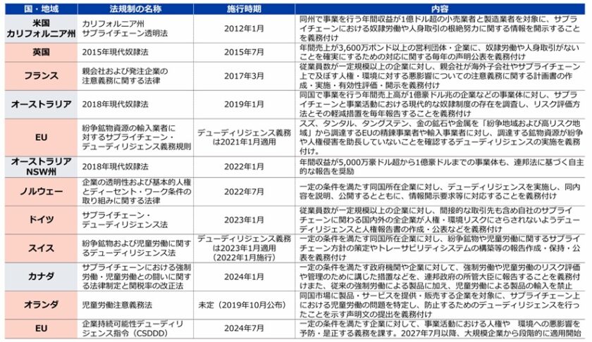 表1: 欧州中心に進む人権デューディリジェンスの義務化