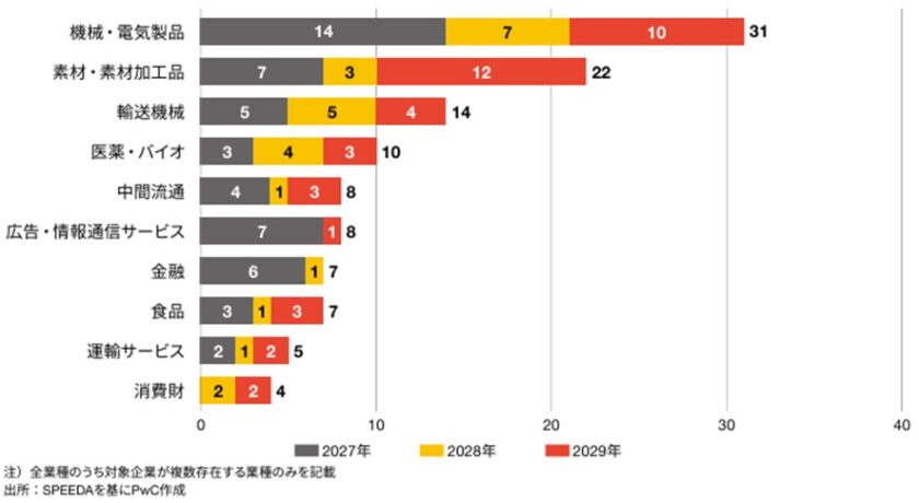 日本企業については、国内約4,000社の上場企業のうち、120社が対象企業要件に当てはまったとしています。このうち、機械・電気製品が31社と最も多く、化学・製紙など素材・素材加工品が22社、自動車など輸送機械が14社、医薬・バイオが10社と続きます[*1], (図7)。