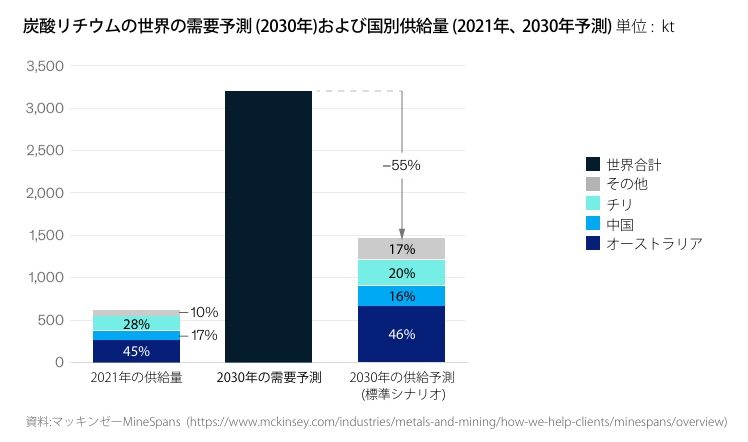 図3: 炭酸リチウムの需要予測及び国別供給量