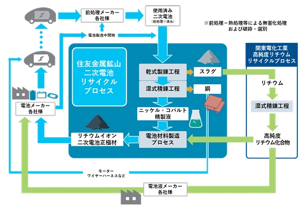 図9: 住友金属鉱山株式会社と連携先各社によるリサイクルプロセス