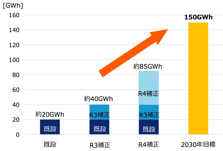 政府は2030年までに年間150GWhの製造基盤の構築を目指し、今後も民間投資を後押ししながら生産体制を拡大していく計画です。