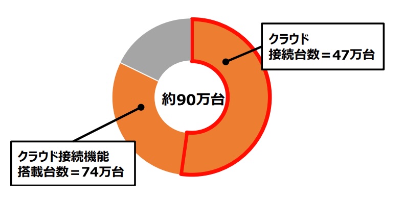 2024年時点で、市場に出荷されている家庭用蓄電池約90万台のうち、クラウド機能を搭載しているのは約74万台で、全体の8割以上を占めています。