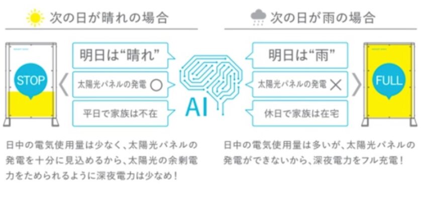 この制度に合わせて、最初の4年間はAIが家庭の電気の使用状況を学習することで日中の消費電力を予測し、必要な分だけ充電したうえで、可能な限り売電するように制御します。
